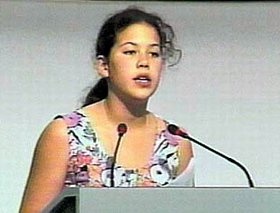 Severn Suzuki speaking at the UN Earth summit in June 1992, Rio de Janeiro.